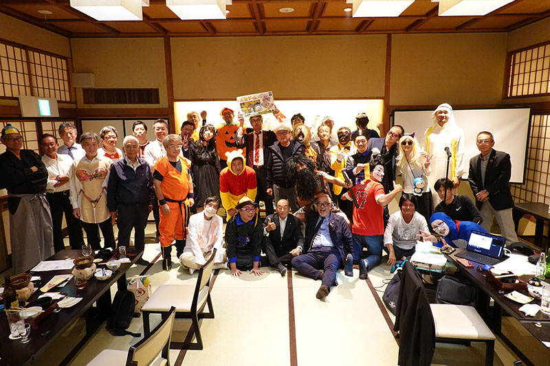 ~和みの空間でもっと交流しましょう~というタイトルのもと、今年で2回目となる「ハロウィン例会」を開催。会場は、茄子の花“無庵”。この日のために張り切って準備をしてくれた猛者も多数。中には東京まで行って仕上げてきたメンバーもいて、その艶やかな容姿は会場の視線を釘付けに――。くじ引き大会&仮装コンテストで秋の夜長を楽しんだ。